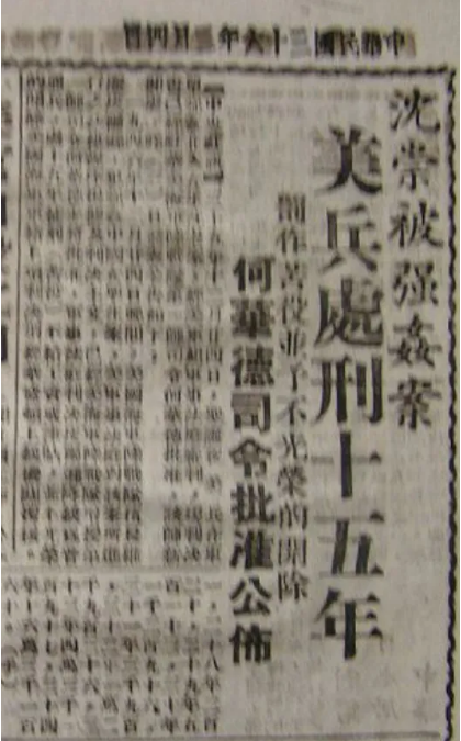 1946年12月24日夜,大约8时左右,19岁的北大女生沈崇在平安戏院看完电影《民族至上》步行回家。当天北京的《北方日报》曾发出提醒:“今晚洋人狂欢,妇女盼勿出门。”可见中国人对美军的了解。沈崇从东长安街行至东单练兵场附近时,被两名美军拖入小树林,一名美军摁住她双手,另一名脱她棉衣,进行施暴。